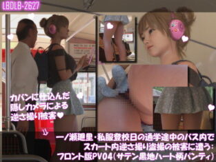 3DCG 一ノ瀬廻里・私服登校日の通学途中のバス内でスカート内逆さ撮り盗撮の被害に遭う:フロント版PV04(サテン黒地ハート柄パンティ)【Libido-Labo】